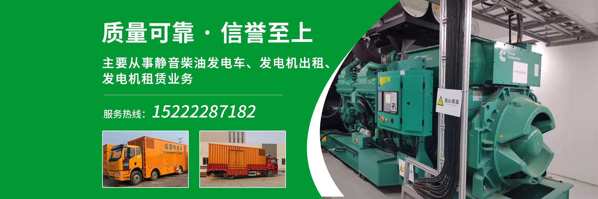 天津旭誠(chéng)機(jī)械設(shè)備租賃有限公司是專業(yè)天津發(fā)電機(jī)租賃公司,發(fā)電車租賃公司,發(fā)電機(jī)出租公司。主要從事靜音柴油發(fā)電車、發(fā)電機(jī)出租、發(fā)電機(jī)租賃業(yè)務(wù),現(xiàn)有大中小型發(fā)電機(jī)、發(fā)電車組數(shù)百臺(tái),發(fā)電機(jī)組功率從50KW-2000KW均可提供,隨時(shí)為客戶提供不同功率機(jī)組自備發(fā)電業(yè)務(wù),電力供應(yīng)保障充足,是各項(xiàng)工地施工、消防備用、企業(yè)避峰、短期自備發(fā)電的優(yōu)選。業(yè)務(wù)覆蓋京津冀全域。